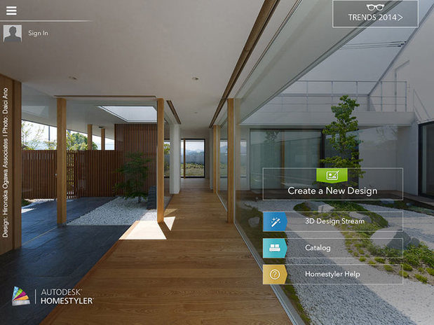 After firing up the app, we were presented with a few options to get started. There is the obvious choice—the "Create a New Design" button—but there are additional options including a choice to review the "3D Design Stream" of shared rooms, the product catalog, “Homestyler Help” and a link to check out 2014 trends.