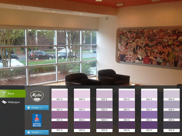 Our lobby has white walls, so we decided to add a little color to one of the walls. To select the wall, the user must first "paint" a mask on the wall. The app uses a masking technique that allows you to fill in the area you want to change. If you use the paint bucket option, it will attempt to select the rest of the wall you have already started “painting.”