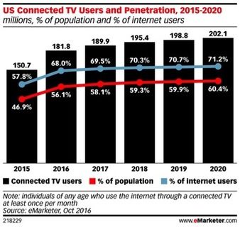 Consumers’ love for TV isn’t going away. In fact, they still spend more time consuming TV than any specific digital platform. But TV – and the way people consume it – is evolving. For example, today your audience might be catching many of their favorite programs via streaming devices; don’t disregard this space as a chance to get your message in front of them. Over the Top (OTT) media such as Netflix or connected devices for streaming content (anything outside of traditional TV) is growing. And new players, such as YouTube Red and Amazon Prime, are entering the space every day.