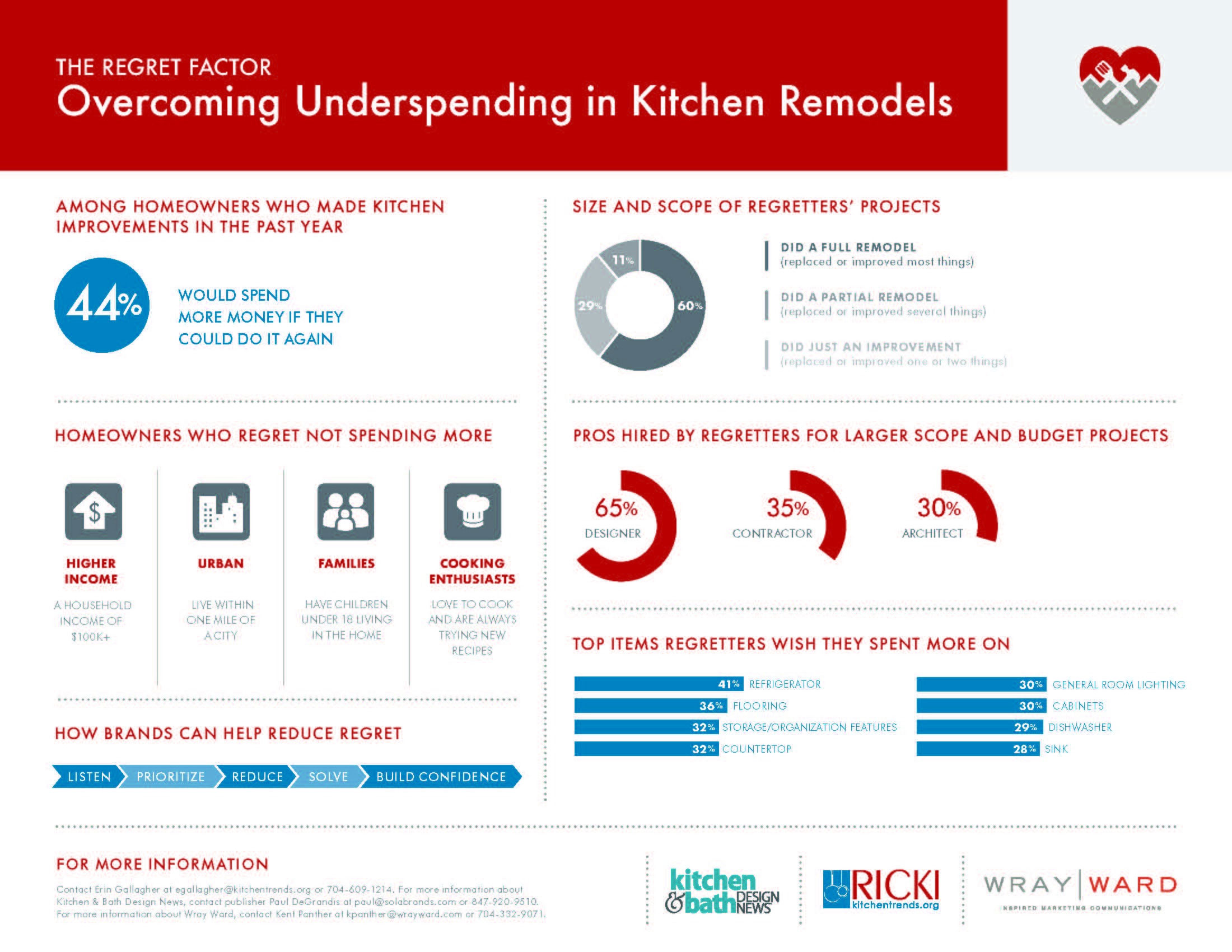 That’s the crux of The Regret Factor, original research developed by Wray Ward and the Research Institute for Cooking and Kitchen Intelligence (RICKI) to delve into the science behind underspending in home improvement. It’s the first study with this level of detail and exploration regarding dissatisfaction drivers. And, it’s a great way for home improvement professionals to gain a better understanding of how to navigate their business and work with their customers — the homeowners.